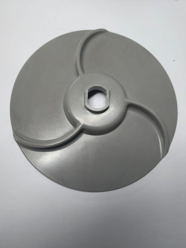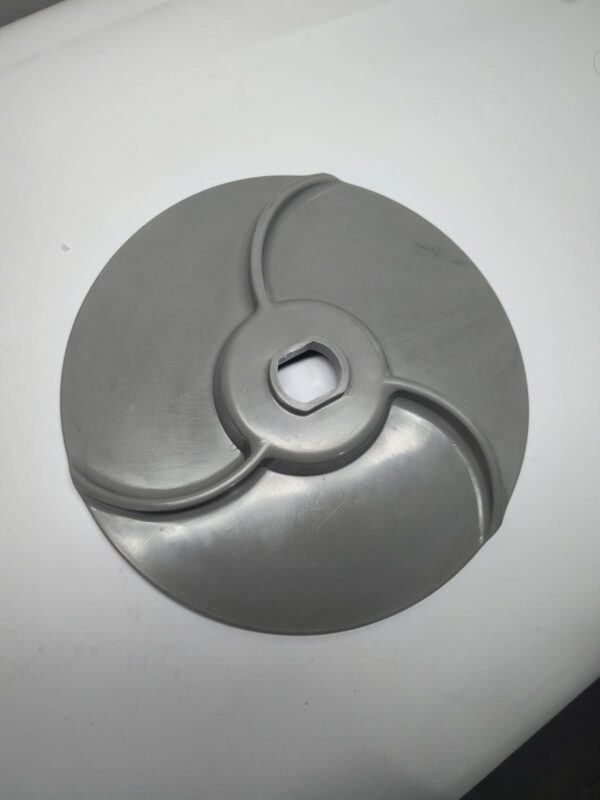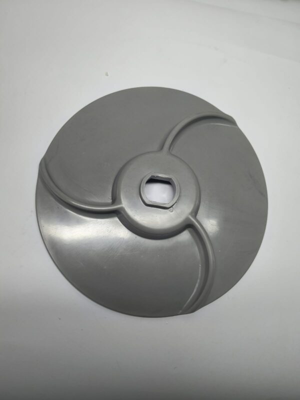 Este disco expelidor atua abaixo do disco de corte, e sua função é “expelir” ou ejetar os alimentos processados, evitando acúmulo ou entupimento no equipamento. Ele é essencial para manutenção preventiva ou corretiva em cozinhas industriais, refeitórios, restaurantes ou padarias que operam com este tipo de processador.