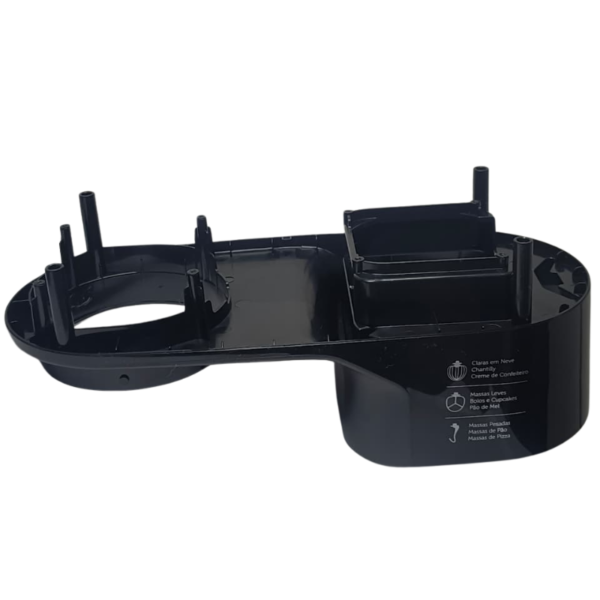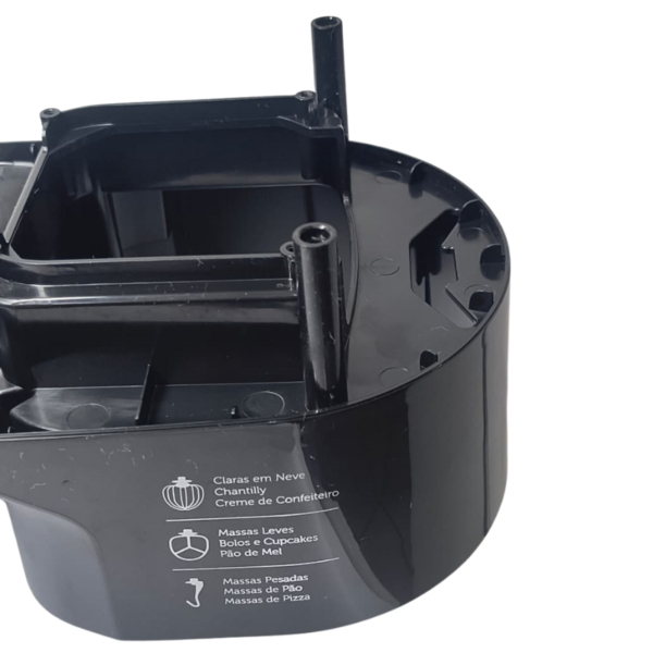 Gabinete Superior Original Oster para Batedeiras Planetárias da linha OBAT610. Peça de reposição essencial para a proteção do motor e acabamento do aparelho, compatível com modelos como OBAT610, OBAT640 e OBAT651. Fabricado em plástico resistente, garante o funcionamento e a estética original da sua batedeira.