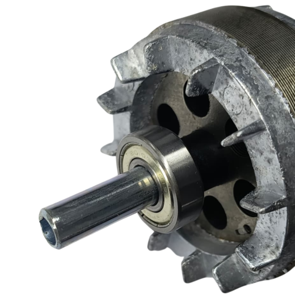 Rotor para reposição em ventiladores Loren Sid Turbo e Tufão de 50cm e 60cm. Essencial para o funcionamento do motor bivolt, esta peça de eixo oco liso restaura o movimento e a ventilação do seu aparelho de parede, mesa ou coluna.